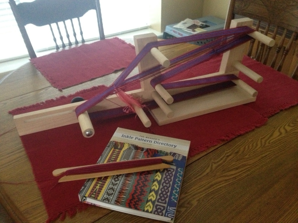 My inkle loom has been dusted off. I’m busily weaving off a simple band started long ago. The book,”The Weaver’s Inkle Pattern Directory” by Anne Dixon, was a holiday gift. It will be hard to choose one of the 400 warp faced patterns from this book to weave next