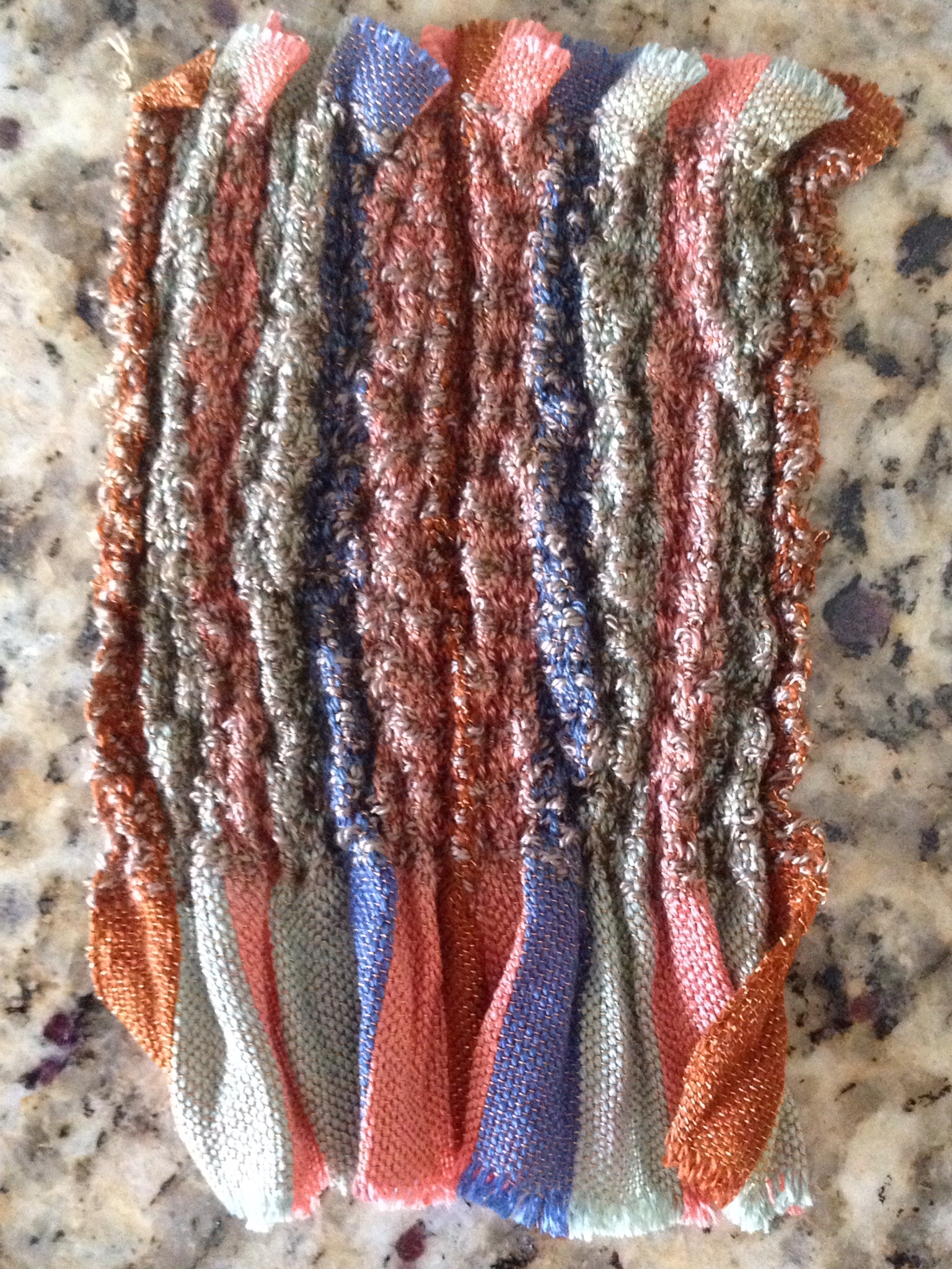 image Crimp weave warp 8/2 tencel, weft metallic covered yarn 220 denier ( Marathon) Leave a comment Cancel reply Δ