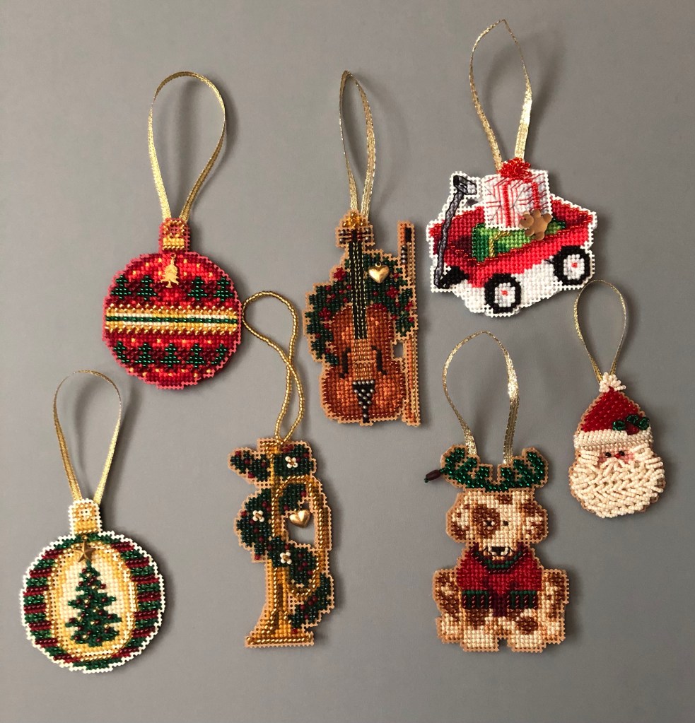 I’ve always enjoyed doing beaded counted cross stitch kits by Mill Hill. Christmas ornaments are my favorite. Over the years I have started many. Some became gifts others kept and others linger unfinished in a box. Finishing the last steps has often not been done. When I was on a cleaning mission these were found tucked away. I am proud to say most were completed and placed upon the tree.
