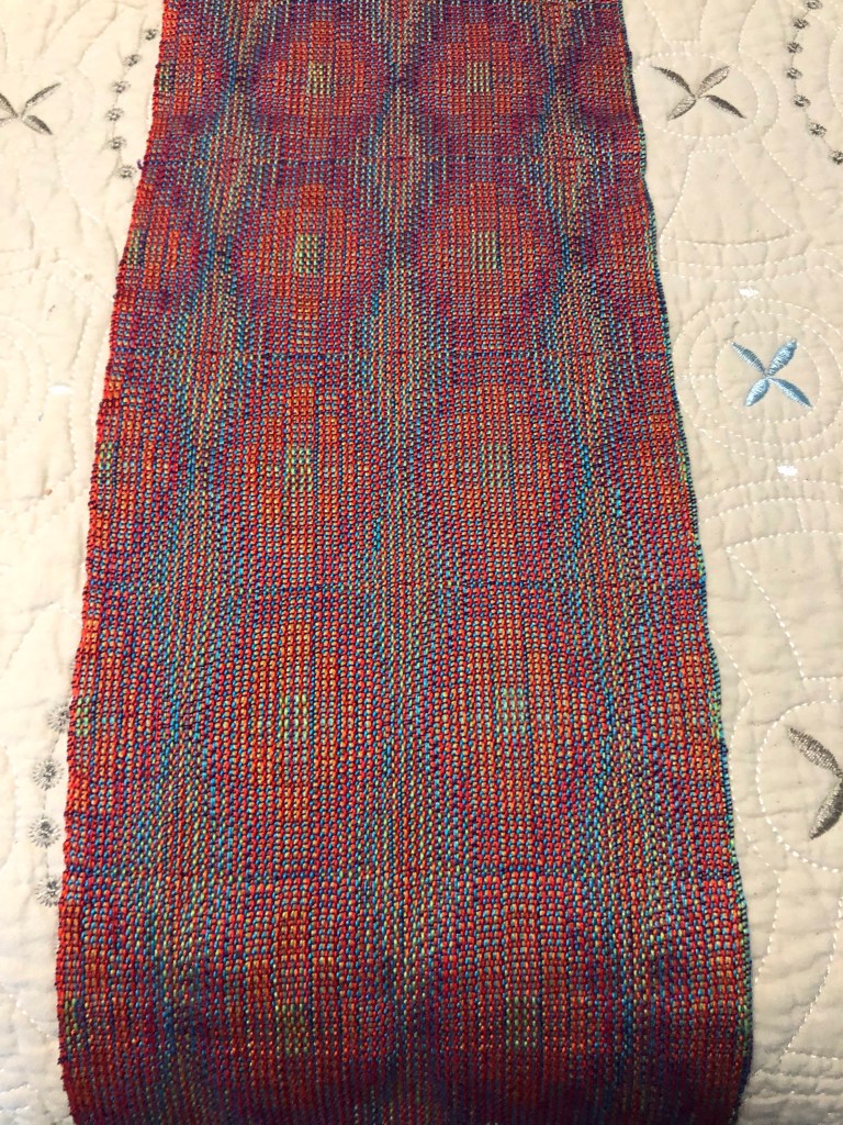 The end of the year meant finishing work on the looms, to begin the new year fresh. The piece above is an echo weave in a different color combination from the one woven in, Denise Kovnat’s Echo and Jin workshop. My Jane loom is now waiting for a new warp to be put on.