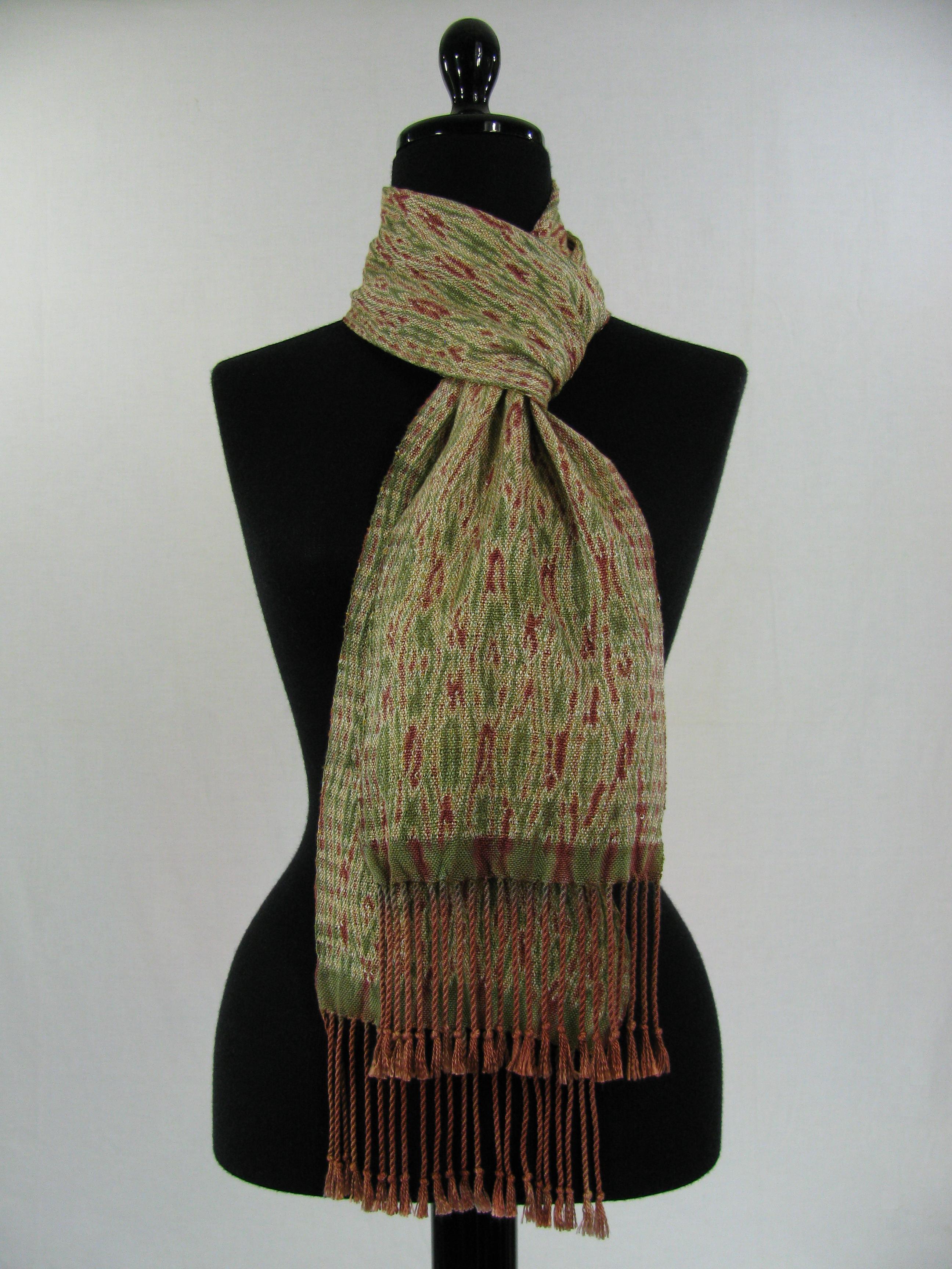 Turning Leaves Handwoven Shibori Scarf. Hand dyed, with twisted fringe. 100% Tencel. 8 x 70 inches. Leave a comment Cancel reply Δ