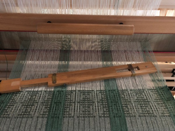 Echo weave 10/2 cotton mercerized. Fresh off the loom before washing The end of the year meant finishing work on the looms, to begin the new year fresh. The piece above is an echo weave in a different color combination from the one woven in, Denise Kovnat's Echo and Jin workshop. My Jane loom is... Continue Reading →